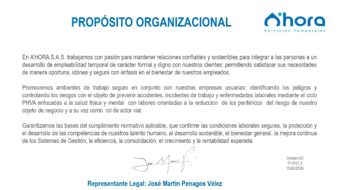 Facilitar el manejo del personal a nuestros clientes mediante la selección y el suministro del personal en misión, a partir de procesos y servicios eficaces, consistentes, y oportunos; con personal competente que garantice el mejoramiento continuo, la satisfacción del cliente y el crecimiento, permanencia y rentabilidad de la organización.